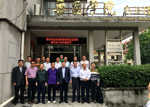 廣東省教育廳科研處副處長吳寶榆、華南農(nóng)業(yè)大學(xué)科技處副處長劉長威、獸醫(yī)學(xué)院黨委書記梁梓森、廣州市華南農(nóng)大生物藥品有限公司總經(jīng)理梁昭平、天津瑞普生物藥業(yè)有限公司代表劉海霞,以及項目組負(fù)責(zé)人華南農(nóng)業(yè)大學(xué)副校長廖明教授以及項目組成員參加了該鑒定會。