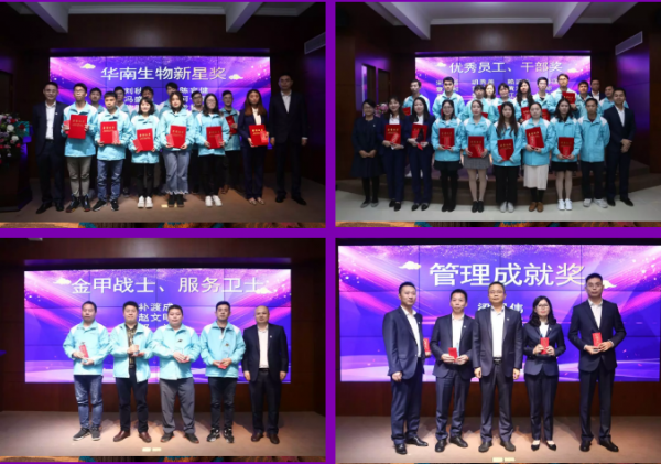 2019年,涌現出一批批表現優(yōu)秀的管理人員、基層人員與團隊進行了表彰頒獎。現場頒發(fā)的獎項依次是:華南生物新星獎、優(yōu)秀員工獎、優(yōu)秀干部獎、服務衛(wèi)士獎、金甲衛(wèi)士獎、管理成就獎、管理卓越獎、優(yōu)秀專家獎、最佳支持團隊獎、攻堅克難團隊獎、最佳保質保量團隊獎、王者之師團隊獎。