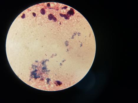 抽取病雞血液,做抹片,革蘭氏染色。見下圖: