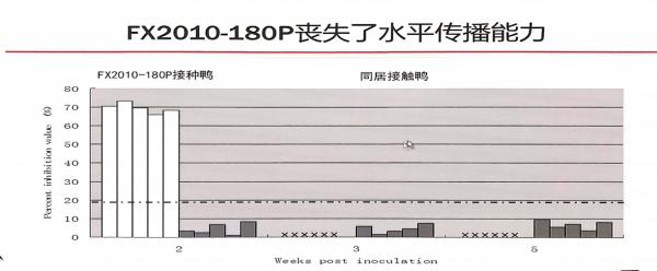 疫苗毒通過傳代致弱,無致病性。免疫后同居鴨群未受感染,且無法在體內傳代。說明其無水平傳播能力,無毒力返強風險。