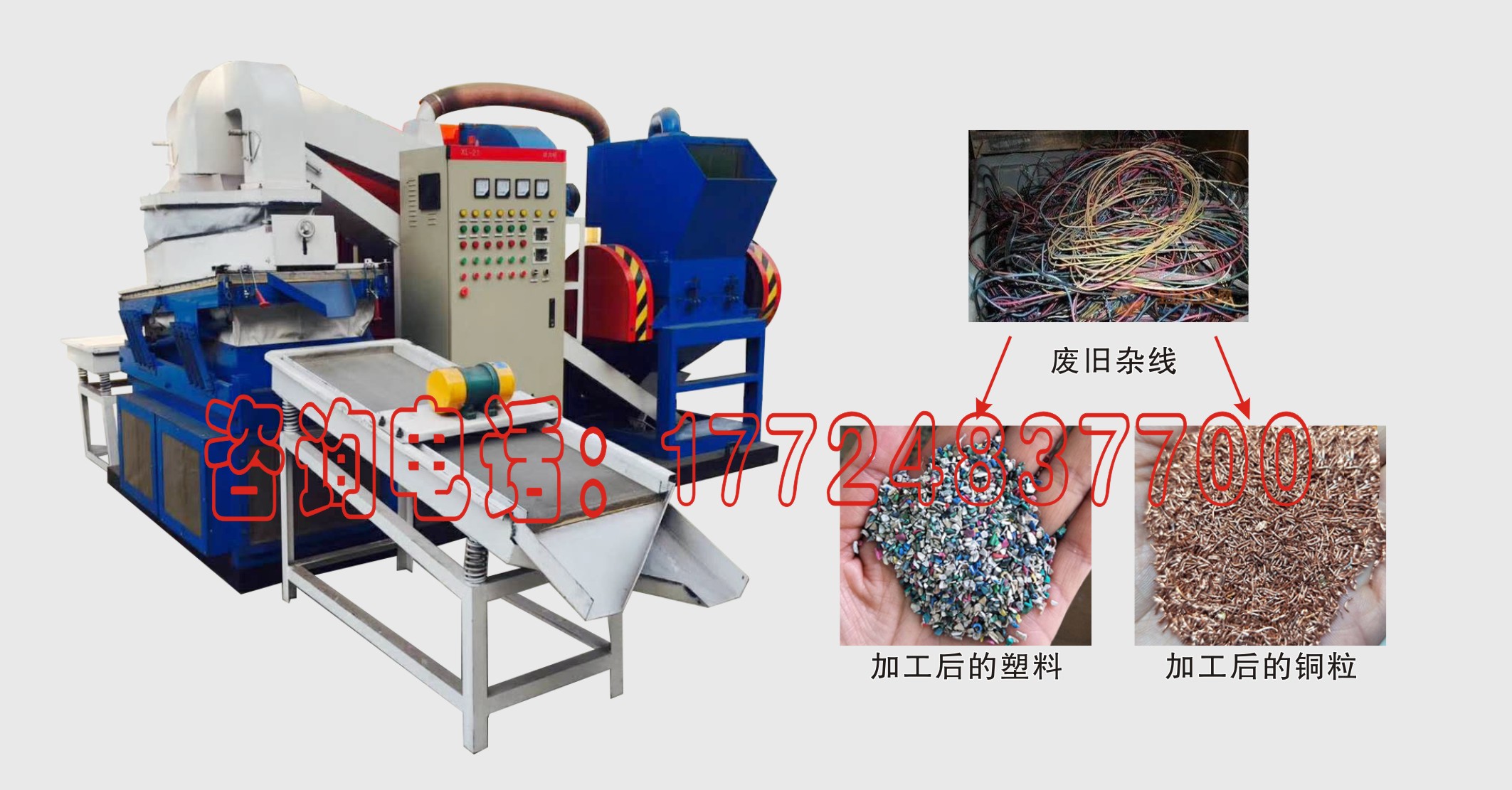 銅米機也稱之為廢舊電線回收處理設備,是一款用于粉碎廢舊電線、電路線、雜線、通訊線、數據線、耳機線并將其中的銅和塑料進行分選的環保型機械設備,也是一款廢物再利用設備。久旺機械生產的銅米機價格合理、結構緊湊、產量高、銅塑分選率高,是對廢舊電線進行粉碎、分選的理想設備。